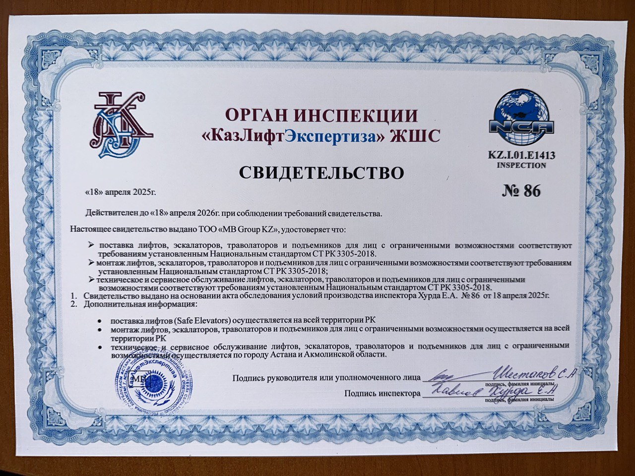 Компания MB GROUP — поставщик и интегратор современного лифтового оборудования в Казахстане. Мы специализируемся на комплексных решениях в сфере вертикального транспорта: от подбора и поставки до монтажа и технического обслуживания лифтов и эскалаторов.